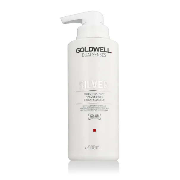Goldwell Dualsenses Silver 60sec Treatment 500 ml ist eine intensive Haarmaske für blondes und graues Haar, die hilft, unerwünschte Gelbstiche zu neutralisieren und das Haar gleichzeitig mit Tiefenpflege zu versorgen. Diese aufbauende Haarmaske wirkt in nur 60 Sekunden, nährt die Haarfaser und macht das Haar geschmeidig, glänzend und einfach zu stylen.