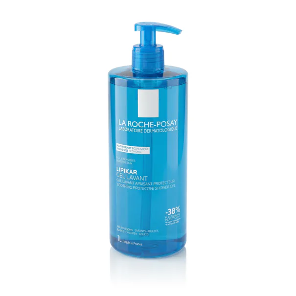 La Roche-Posay Lipikar Beruhigendes Schutz-Duschgel 1000 ml ist ein besonders sanftes Duschgel für empfindliche, trockene bis atopische Haut. Angereichert mit La Roche-Posay Thermalwasser, Niacinamid und Lipiden, reinigt es sanft, ohne die Hautbarriere zu stören, und beruhigt und schützt die Haut vor Trockenheit. Sie ist für die tägliche Anwendung bei Erwachsenen, Kindern und Babys geeignet.