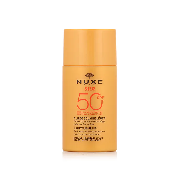 Nuxe Sun Light Sun Fluid High Protection SPF 50 50 ml ist ein leichter Sonnenschutz für das Gesicht, der hohen Schutz vor UVA- und UVB-Strahlen bietet und gleichzeitig die Haut pflegt. Dank seiner nicht fettenden Textur zieht es schnell ein und hinterlässt die Haut geschützt, hydratisiert und natürlich strahlend.
