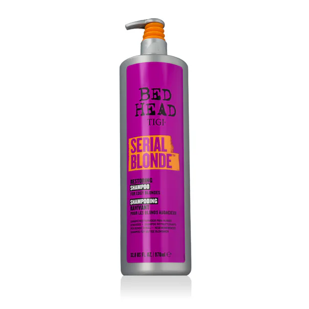 Tigi Bed Head Serial Blonde Restoring Shampoo for Edgy Blondes 970 ml ist ein Shampoo für die Wiederherstellung und den Glanz von blondem Haar, das speziell für aufgehelltes, gesträhntes und chemisch behandeltes Haar entwickelt wurde. Dank seiner pflegenden Inhaltsstoffe hilft es, die geschädigte Haarfaser wiederherzustellen, stärkt das Haar und verleiht ihm einen strahlenden Glanz, ohne es zu beschweren.